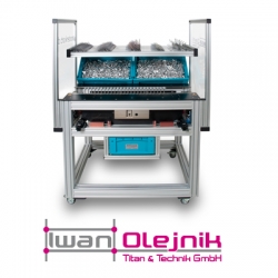 Bestükungsmaschine BS2 Maße: 1300x900x1000mm ( LxBxH) eignet sich zum Bestücken von High-Load-Gestelle bis 1200mm Zum Produktvideo DOWNLOAD PDF